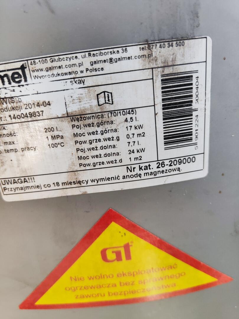 Sprzedam dwa bufory pionowe z wężownicą po 200l każdy. Stan b.dobry. Cena do uzgodnienia.