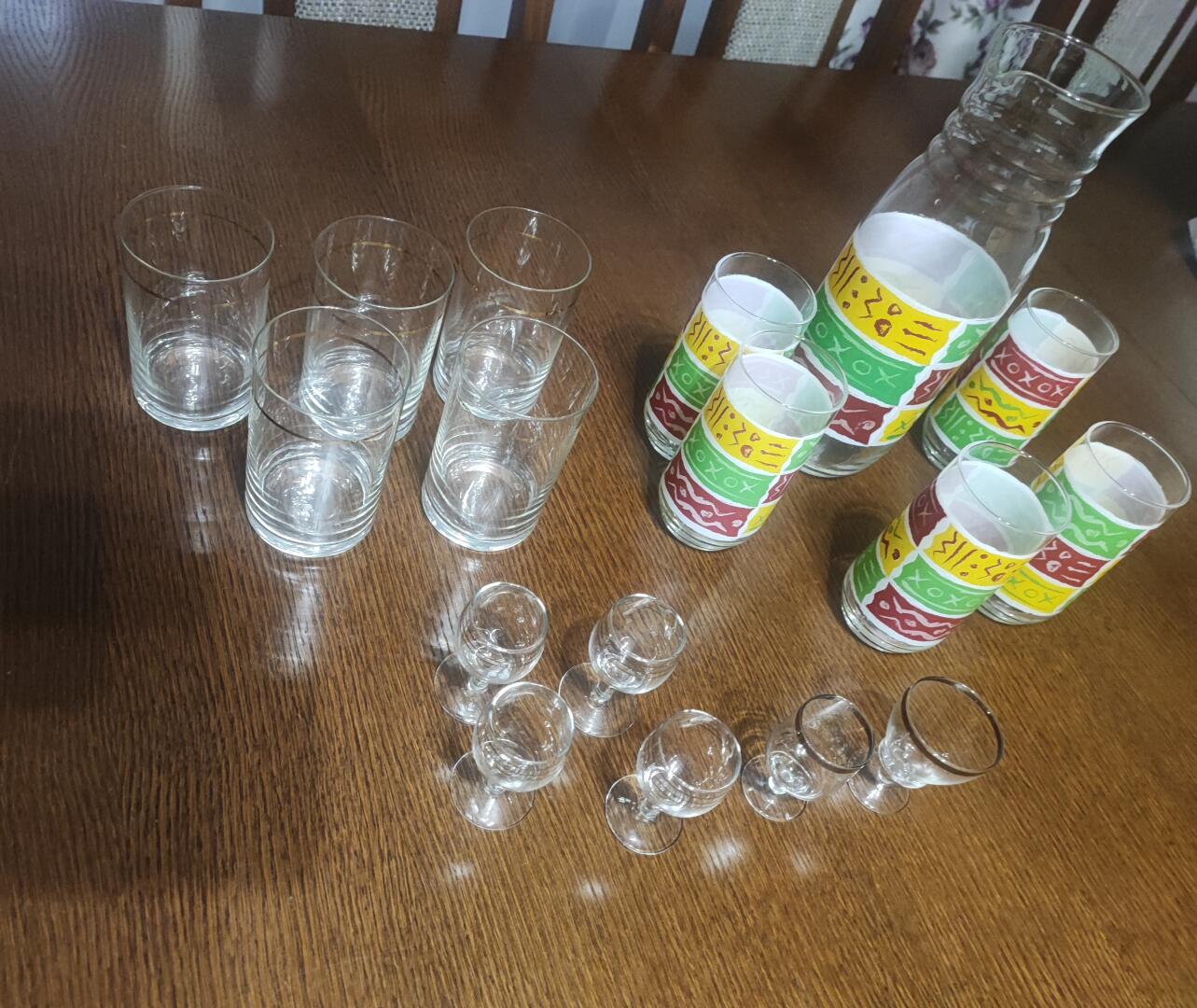 Oddam za 2 opakowania zielonej herbaty liściastej widoczne na zdjęciu szklanki i kieliszki